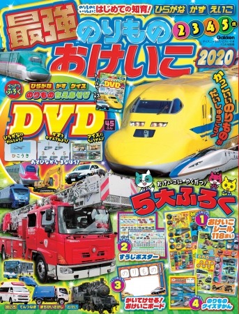 人気の新幹線やはたらく車といっしょに、ひらがな・かず・英語のおけいこができます。