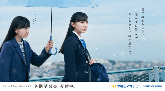 早稲田アカデミーの冬期講習会・新グラフィック広告は、芦田さんを起用した広告シリーズの共通テーマである「ドキュメンタリー的な表現」かつ「多くを語らず、感じさせる広告」を軸に制作いたしました。