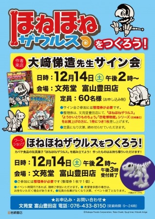 株式会社岩崎書店(代表取締役:岩崎弘明、本社:東京都文京区)は、2019年12月14日(土)に富山県富山市の文苑堂 富山豊田店にて、「ほねほねザウルス」の著者・大崎悌造さんのサイン会と、玩具菓子「ほねほねザウルス」の組み立てワークショップを開催いたします。