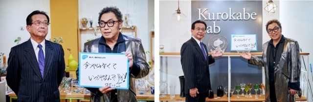 は、ガラス工芸として有名なことから、知って、肝炎プロジェクトのロゴ入り記念プレートが披露された他、会場の担当者より黒壁スクエアの歴史と文化について紹介があり、コロッケ氏ら出演者は興味深げに耳を傾けていました。今後も、当プロジェクトでは、肝炎の知識や検査の必要性を知ってもらうことを目指し、啓発活動を行なってまいります。