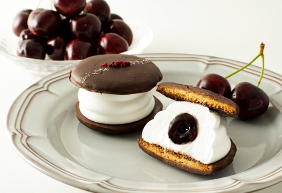 マシュマロの中にはジューシーなアマレーナチェリーをまるごと1粒包みました。
