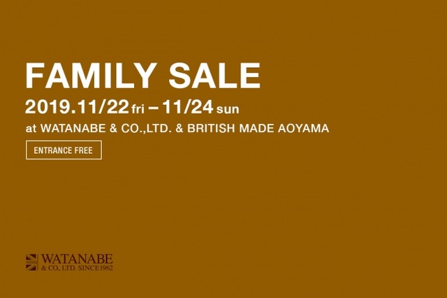 英国のクラフトマンシップから生まれた、ストーリーある英国ブランドをお届けしている渡辺産業株式会社にて、2019年11月22日(金)から11月24日(日)の3日間限定でファミリーセールを開催します。
