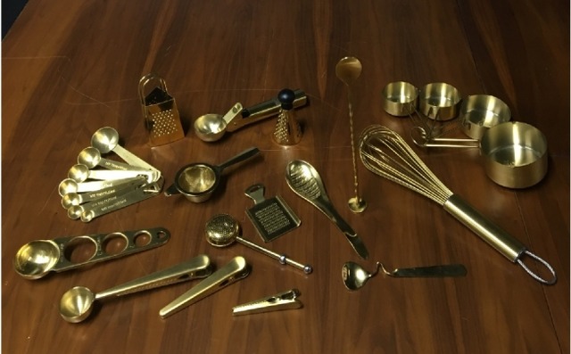 「BONO BONO」ブラスカラーの調理道具は、それを持っている、使っている自分に満足感が得られる、すぐ使えるように出し放しにしておいてもカッコいいキッチンツールです。