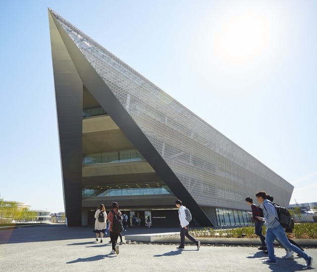 追手門学院は昨年12月に茨木市と協定を結び、今年4月に開設した茨木総持寺キャンパスの大学棟・アカデミックアーク1階の出入口付近を、災害時の一時避難場所として開放します。アカデミックアークは鉄骨・鉄骨鉄筋コンクリート造5階建の逆三角推の形状で、上層階へいくほどせり出す構造になっています。1階出入り口付近はちょうど軒下のようなスペースになっており建物の中に入らなくても雨をしのぐことができます。また、キャンパスの周囲には塀などはなく自由に出入ができるほか、地域とキャンパスをつなぐ通路も整備しており地域連携と防災の新しい拠点でもあります。