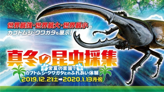 常磐興産株式会社(本社:福島県いわき市、代表:井上直美)が運営する、スパリゾートハワイアンズでは、世界最強・最大・最小のカブトムシ・クワガタとふれあえるイベント「真冬の昆虫採集」を2019年12月21日(土)から2020年1月13日(月・祝)まで開催します。
