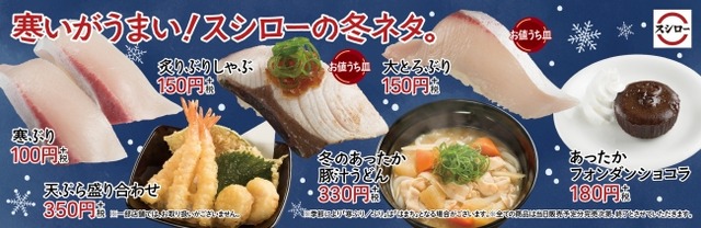 旬のぶりからあったかサイドメニューまで、冬を美味しく楽しんでいただける商品を取り揃えておりますので、ぜひお近くのスシローにお越しいただき冬ならではの商品をご賞味ください。