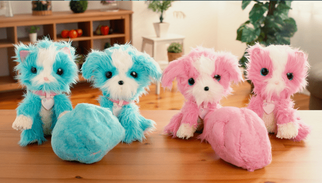 今回新しく登場する『WHO are YOU ? リアルレスキュー』は、電動で動く仕様となっており、謎の毛玉を手に取った瞬間ぶるぶると震え出します。震えた毛玉を水につけると、入水センサーが反応し、まるでお風呂に浸かったときのような「ふぅ~」という声を発します。そのまま水で洗うと息を吹き返したかのように心臓の鼓動が聞こえ、犬か猫のぬいぐるみに変身します。変身したぬいぐるみには、ミルクを飲ませることができ、「ゴクゴク」や「ウッ」といった本物さながらのゲップ音も楽しむことができます。ぬいぐるみを抱きかかえると寝息が始まり、まるで本物のペットのように一緒に眠りにつく体験も楽しめます。総勢35もの音や振動といったエフェクトにより、「WHO are YOU?」がまるで生きているかのように感じることができ、ぬいぐるみとのエモーショナルな出会いがより一層感動的なものになります。「WHO are YOU?」との相互コミュニケーションで、深まる絆を体験してください。