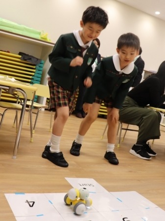 11月7日(木)第4回目の教室に参加したのは8人の園児たち。課題は、ひと桁のたし算の答えをだし、その数字のマスにロボットを動かします。園児たちはタブレット操作もお手のもの。思い通りに動くと思わず歓声があがります。講師を務めた一般社団法人STEM教育協会の佐藤大樹さんは、「最短距離を目指す子、複雑な動きに挑戦する子、それぞれの個性がでて楽しいですね。遊びながら論理思考に触れて欲しいです」と語ります。青葉台園の尾藤拓史園長は、「百貨店グループならではの『上質な体験』をすることによって、園児たちが、将来の可能性の選択肢を広げることを願っています」と新企画に手ごたえを感じていました。
