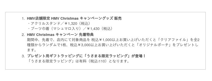 ▶HMV Christmas キャンペーン 特設ページ https://img.hmv.co.jp/cont/usamaruchristmas/