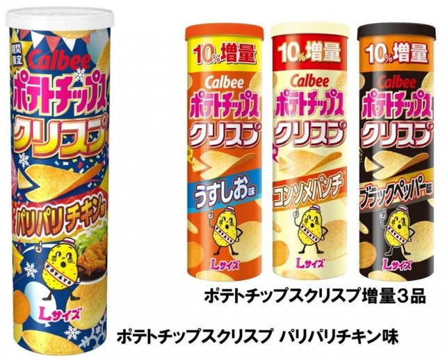 「ポテトチップスクリスプ」は、成型ポテトチップス※市場の活性化を狙いとして、2016年8月に北海道エリアでの発売を皮切りに、地域やラインアップを順次拡充し、現在は全国で「うすしお味」「コンソメパンチ」「ブラックペッパー味」の3フレーバーを展開しています。パリッときわだつ心地よい食感と、じゃがいもの風味が絶妙にマッチした美味しさがお客様から好評をいただいています。この度、クリスマスや年末年始のパーティー時期に合わせ、スパイシーなフライドチキンの味わいが楽しめる『ポテトチップスクリスプ パリパリチキン味』を期間限定で発売する運びとなりました。