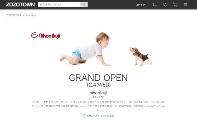 株式会社日本育児(本社:大阪府大阪市中央区、代表取締役社長:石迫 壮馬、以下 日本育児)は、12月4日12:00より日本最大級のファッション通販サイトZOZOTOWNに出店します。