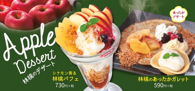 本フェアでは、ほどよい食感のコンポートや、長野県産のフレッシュ「ふじりんご」、林檎ソルベなど様々な林檎をお楽しみいただけます。おすすめメニューは「シナモン香る林檎パフェ」をはじめ、寒い冬にぴったりの温かいデザート「林檎のあったかガレット」、「林檎のあったかぜんざい」など。