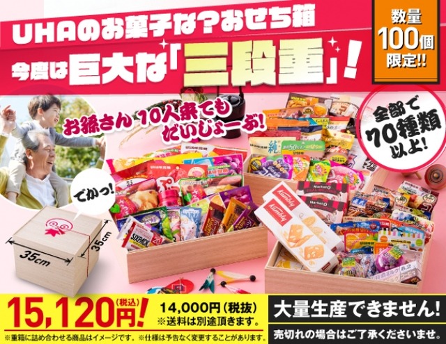 ◆商品名:UHA味覚糖 お菓子なおせち「三段重」 【数量限定100個】