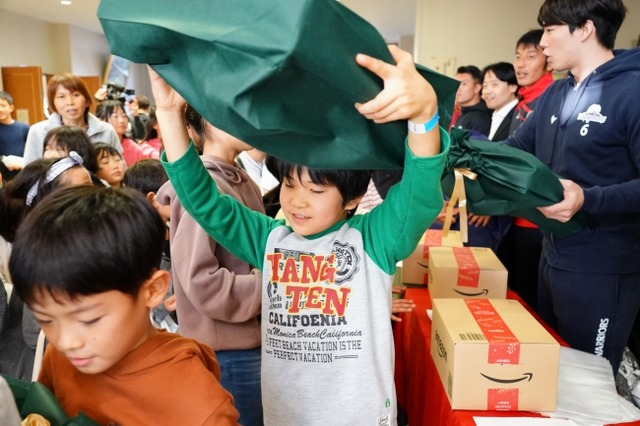 このたびの活動は、台風*の被害が甚大だった長野県内において、未だ避難所での生活を余儀なくされている650人以上の長野市民の皆様に、笑顔を届けるための支援プロジェクトとして企画されました。被災された約120人の幼稚園から高校生までの子ども達をイベントに招待し、地元のアスリート達と一緒に楽しめるスポーツレクリエーションを実施。また、贈りたい相手の年齢や性別、関心にあわせてプレゼントを探せるAmazonの特集ページ「クリスマスギフト2019」で取り扱っている商品のなかから、被災地の子ども達に喜んでいただけるよう、Amazonの玩具担当バイヤーが厳選したおもちゃなどをプレゼントすることで、今なお災害の影響が残る現地で復興に向けて取り組む地元の皆様に笑顔をお届けしました。