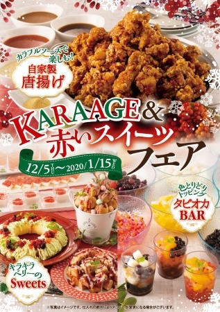 ニラックス株式会社(本社:東京都武蔵野市、代表取締役:岩井 繁明)は、グランブッフェにて「KARAAGE&赤いスイーツフェア」を、パパゲーノでは「チキンロースト&赤いスイーツフェア」を共に12月5日(木)~2020年1月15日(水)までの期間限定にて、開催いたします。
