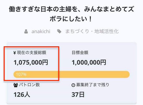 開始後3日で、目標金額100%の100万円の支援金を集めることに成功し、記念として新たなリターンも公開されています。