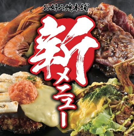 グランドメニューの新商品45種類が一斉にスタートします。お好み焼を中心に、逸品や、熟成ステーキ・熟成カルビなど鉄板焼でおいしい、楽しいラインナップで新登場。