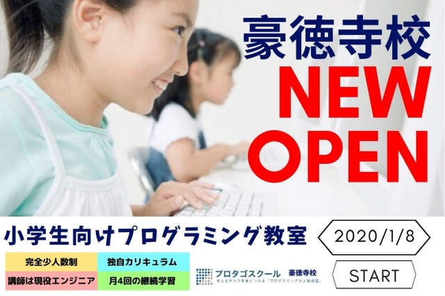 小学生向けプログラミング教室『プロタゴスクール』は、2020年に1月8日(水)に世田谷区豪徳寺に新教室をオープンする。今だけオープン記念として『入会金無料キャンペーン』を実施!