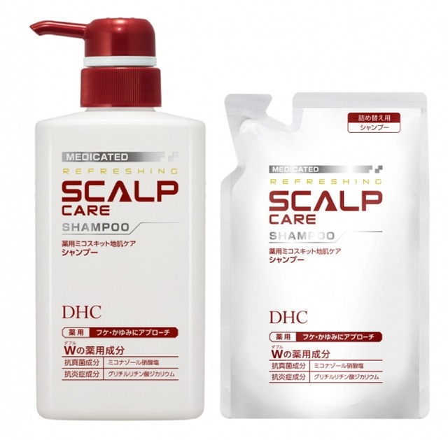 「DHC 薬用ミコスキット 地肌ケアシャンプー」と「同 コンディショナー」は年齢を問わず起こる頭皮のトラブルの代表、フケ・かゆみを“ミコナゾール硝酸塩”と“グリチルリチン酸ジカリウム”の2つの有効成分で防ぐ薬用ヘアケアシリーズです。商品名の“ミコスキット”とは、有効成分の“ミコナゾール硝酸塩”と、洗いあがりがスキッとすることから名付けたDHCオリジナルの造語。フケ・かゆみ防止を目的としたシャンプーは、その効能・効果を優先するあまりに毛髪に対するケアが不足しがちで、仕上がり感に満足できない、という声がDHCにも寄せられていましたが、このたび発売する「DHC 薬用ミコスキット 地肌ケアシャンプー」は、フケ・かゆみを防ぐ効果はもちろんのこと、優れた洗浄効果でフケや汚れを洗い流すほか、豊かな泡立ちで毛髪をいたわり、ノンシリコンながらなめらかで指通りの良い仕上がりを実現いたしました。また、「DHC 薬用ミコスキット 地肌ケアコンディショナー」はシャンプーと同様にフケ・かゆみを防ぎながら、コンディショニング成分により毛髪の水分・脂肪を補い、枝毛や切れ毛になりにくい毛髪へと整えます。 “頭皮の悩みと仕上がり”の両方に応える「DHC 薬用ミコスキット 地肌ケアシャンプー」「同 コンディショナー」で、健やかで快適な頭皮環境をサポートします。
