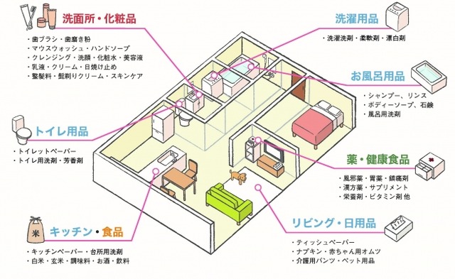 かさばる、重い、買い物に行く時間がないといった理由から日用消耗品を届けてもらいたいというニーズが共働き世帯、単身者世帯、高齢者世帯等に増えていることが本事業の背景にあります。「ママタイム」サービスは、担当者が定期訪問し、家庭で必ず利用される「かさばる・重い」日用必需品をドラッグストア価格で各家庭にお届けし、使った分だけお支払いただく新サービスです。お届けできる商品は、定番の食品・日用品300~500アイテムを中心に、お客さまのニーズに応じて20,000アイテムの中から選んでいただくことが可能となります。