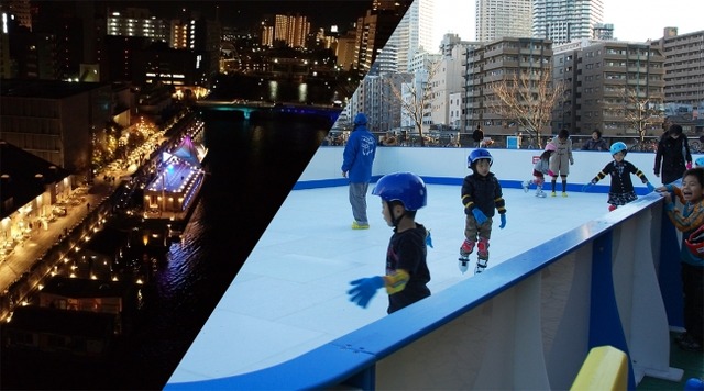 樹脂製の専用パネル製で電気を使わない省エネ&エコなシステムによるこの特設「水上スケートリンク」は、氷を使わず、専用ワックスなどの散布なしで滑れて、転んでも濡れず、子どもでも楽しく滑ることが可能です。是非この機会に、お子様たちに冬の水辺空間の新しい過ごし方を体験させてあげてください。