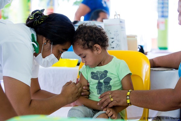 症例数は減っているものの、はしかの再流行はいまも続いています。2018年と2019年、ユニセフははしかワクチン計45万1,300回分を調達し、配送しました。パートナー団体の協力の下、全国キャンペーンが3段階で実施され、63万3,505人の子どもに届けられました。