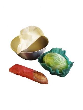岐阜県のミツバチの巣から採取したみつろうをベースにしたオイルを、たっぷりとオーガニックコットンの生地に染み込ませた天然ラップです。主にみつろうとオーガニックコットンでできており、食材や器をぴたりとラップします。みつろうとホホバオイルには抗菌性と天然の保存性があるので、食品の鮮度の持ちが良くなります。