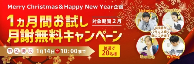 英語学習がまったく初めてのお子さまも、すでに他の英会話教室や英語塾に通われているお子さまもキャンペーンの対象となります。1ヵ月間、じっくりお試しいただけるチャンスです。皆さまのご応募をお待ちしております!