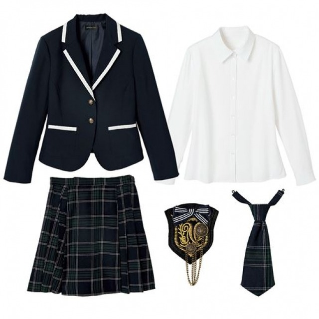 キューポップだけでしか買えない、カジュアルブランド「SPIRAL GIRL」のスーツセット。グログランテープ使いで雰囲気を格上げしたブレザーとシャツ、スカート、ネクタイ、エンブレムの5 点セット。セレモニーだけでなく、通学やフォーマルな場でも使えます。