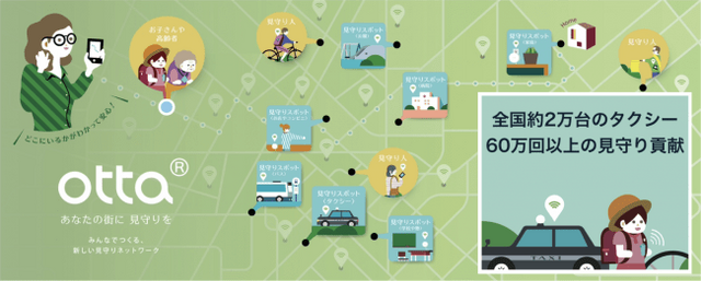 現在『JapanTaxiタブレット』は、ottaが提供するIoT見守りサービスにおいて『動く見守りスポット』としての役割を担っています*1。
