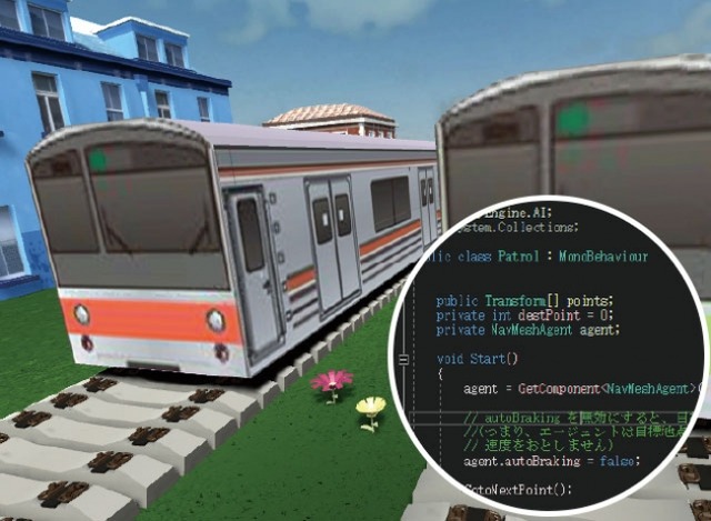 Blenderによる3Dモデリングで電車をつくり、C#プログラミングで動かします。テキストプログラミングに挑戦したいお子さんも歓迎します。
