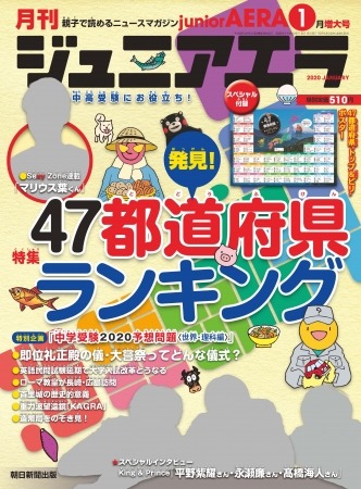 小中学生向けのニュース月刊誌「ジュニアエラ」2020年1月号は12月13日(金)発売。スペシャルインタビューにKing & Princeの平野紫耀さん、永瀬廉さん、高橋海人さんの3人が登場します。特集は「47都道府県ランキング」。間近に迫る中高受験に即役立つデータがたっぷり詰まっています。