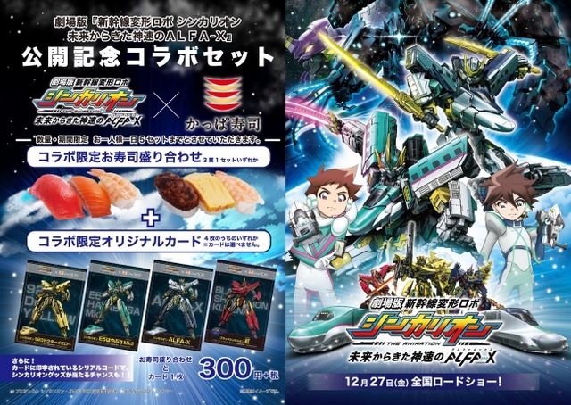 コロワイドグループのかっぱ寿司(カッパ・クリエイト(株) 本社:神奈川県横浜市 代表取締役社長 小澤俊治)は、劇場版『新幹線変形ロボ シンカリオン 未来からきた神速のALFA-X』の公開を記念し、2019年12月21日(土)より、公開記念コラボセットを販売いたします。