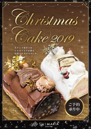 シルスマリア2019年のクリスマスケーキは生チョコレートをふんわりショコラスポンジとチョコクリームで包んだ生チョコノエル他全6アイテムをご用意しております。
