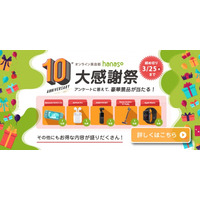 オンライン英会話スクール「hanaso」10周年アンケートの答えて、豪華景品が当たる!『オンライン英会話hanaso10周年記念 大感謝祭』実施のお知らせ