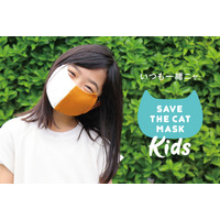 いつも一緒ニャ!猫マスクで大切な日本の小さな命、子供を守って猫も救うニャ!三毛猫,黒ブチ猫,ロシアンブルー柄など、子猫のような猫型マスク「SAVE THE CAT MASK for KIDS」新登場