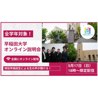 「早稲田大学オンライン説明会2020」を開催、新型コロナ休校・入試イベント中止の高校生、受験生にも情報提供