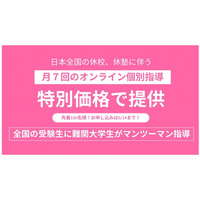 【特別オンライン個別指導】自宅で難関大学生講師からマンツーマン指導が受けられる!期間限定で休校中の受験生を対象にオンラインでの短期特訓コースをオープン!