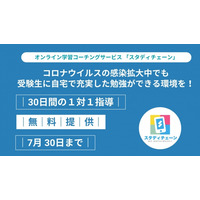 【日本全国の受験生へ】期間限定!オンライン学習コーチングサービス「スタディチェーン」、コロナの影響を受けた全ての受験生を対象に授業を無料で提供 ~事前申し込み受付を開始~
