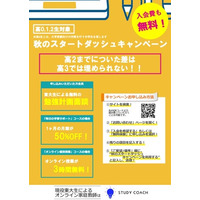 スタディコーチ、秋の受験勉強スタートダッシュキャンペーン開始!!