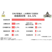 日本の若者が、いま期待する政党は「自由民主党」(64.4%)、首相にふさわしいのは「菅義偉」(46.5%)