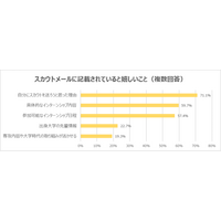 【2022年卒】スカウトメールに記載されていると嬉しいことのトップは「自分にスカウトを送ろうと思った理由」71.1%。「選考なし」「エントリーシートなし」でインターンシップに参加できる特典が好評。