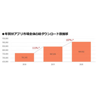 年賀状アプリ市場は総ダウンロード数が昨年比107%と拡大傾向。直接会えないからこそ、年賀状で想いを届け…