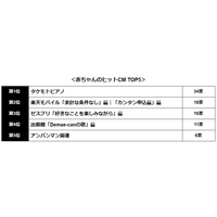 赤ちゃんのヒットCMランキングも同時発表。1位「タケモトピアノ」2位「楽天モバイル」3位「ゼスプリ」 …