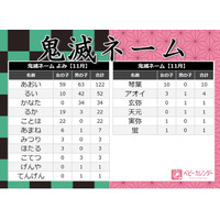 【鬼滅ネーム】ベビーが続々誕生! 社会現象「鬼滅の刃」、赤ちゃんの名づけに影響するほど大人気に! 2020年『11月生まれベビーの名づけトレンド』発表!「みつり」「玄弥」「天元」「実弥」など多数!