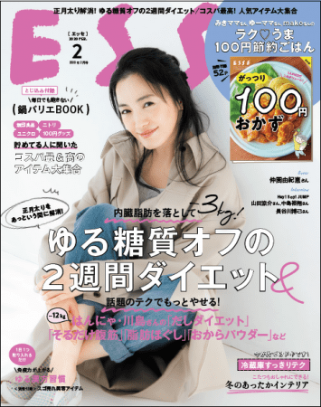 クリスマス、忘年会、お正月…ごちそう続きで、そろそろおなか回りが気になる頃ではないですか? とはいえ、太るのは簡単でもやせるのは難しい。そんなときにすぐに試せるダイエットをまとめて特集したのが、ESSE2月号の巻頭特集「ゆる糖質オフの2週間プログラム」。まねするだけでマイナス3kg! また、今ウワサの「そる」だけでやせる腹筋革命や、はんにゃ・川島さんもダイエットに大成功した「かわだしダイエット」なども全部お試ししています! 2020年早々に、たまった脂肪とサヤナラして、軽やかにスタートしましょう。