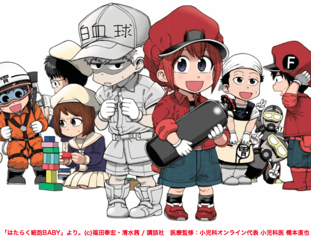 「はたらく細胞BABY」は、清水茜氏の細胞擬人化マンガ「はたらく細胞」の“赤ちゃん版”となるスピンオフです。清水茜氏監修による、福田泰宏の新連載「はたらく細胞BABY」が2019年10月17日発売のモーニング、Dモーニング46号(講談社)にてスタートしました。
