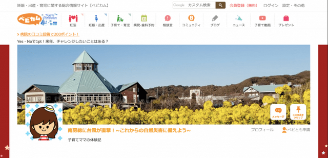 ベビカム株式会社(本社所在地:東京都千代田区、代表取締役:安西正育)は、妊娠・出産・育児の情報サイト「ベビカム」において、「ベビカム」ワークスマート事業に参加している南房総市のライター5名が被災体験をもとに学んだことを伝えるブログ「南房総に台風が直撃!~これからの自然災害に備えよう~子育てママの体験記」を掲載しています。