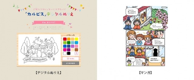 期間中にはひなまつり専用サイト(https://www.calpis.info/coloringbook/)を開設し、「カルピス」を使ったレシピの紹介やお子さんに楽しんでいただくための“デジタルぬりえ”、「カルピス」とひなまつりの歴史を分かりやすく紹介した“マンガ”をお楽しみいただけます。また、1月14日に発売した「『カルピス』みんなとカンパイラベル」(希釈用)・「『カルピス』国産白桃」(希釈用)・「国産白桃あかつき&『カルピス』」(PET500ml)、2月11日に発売予定の「『カルピスソーダ』やわらか白桃」(PET500ml)には、専用サイトのURLをパッケージに記載しています。(「国産白桃あかつき&『カルピス』」(PET500ml)以外にはQRコードも記載)