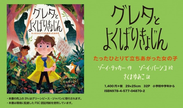 同書は2019年11月にイギリスで出版された絵本で、自分たちのためだけに森の木を切り倒していく“よくばりきょじん”に一人の少女(グレタ)がち向かう物語です。